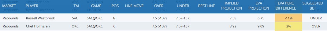 Example: Two Players both have a prop total line of 7.5 Rebounds (-137/-137). One has an implied projection of 7.58, while the other’s is 8.92. How could that be?